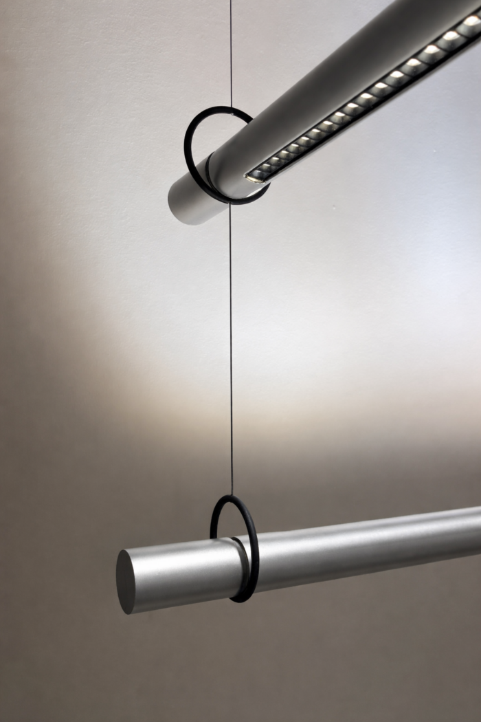 Designed by Josep Lluís Xuclà, Solid began as a reflection on structure and light. The first hand-drawn sketches already defined its essential gesture: a robust linear bar with an industrial spirit, conceived not only as a decorative object but as an architectural presence. From the outset, the intention was clear — to create a luminaire where form and function are inseparable. Where rotation, linking and control are integrated into the design language itself.